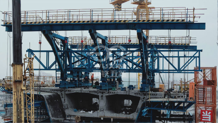 技術(shù)難點(diǎn)或特點(diǎn):左右雙幅,最大梁段重量161.5噸;最長單節(jié)段4米;梁寬18米。